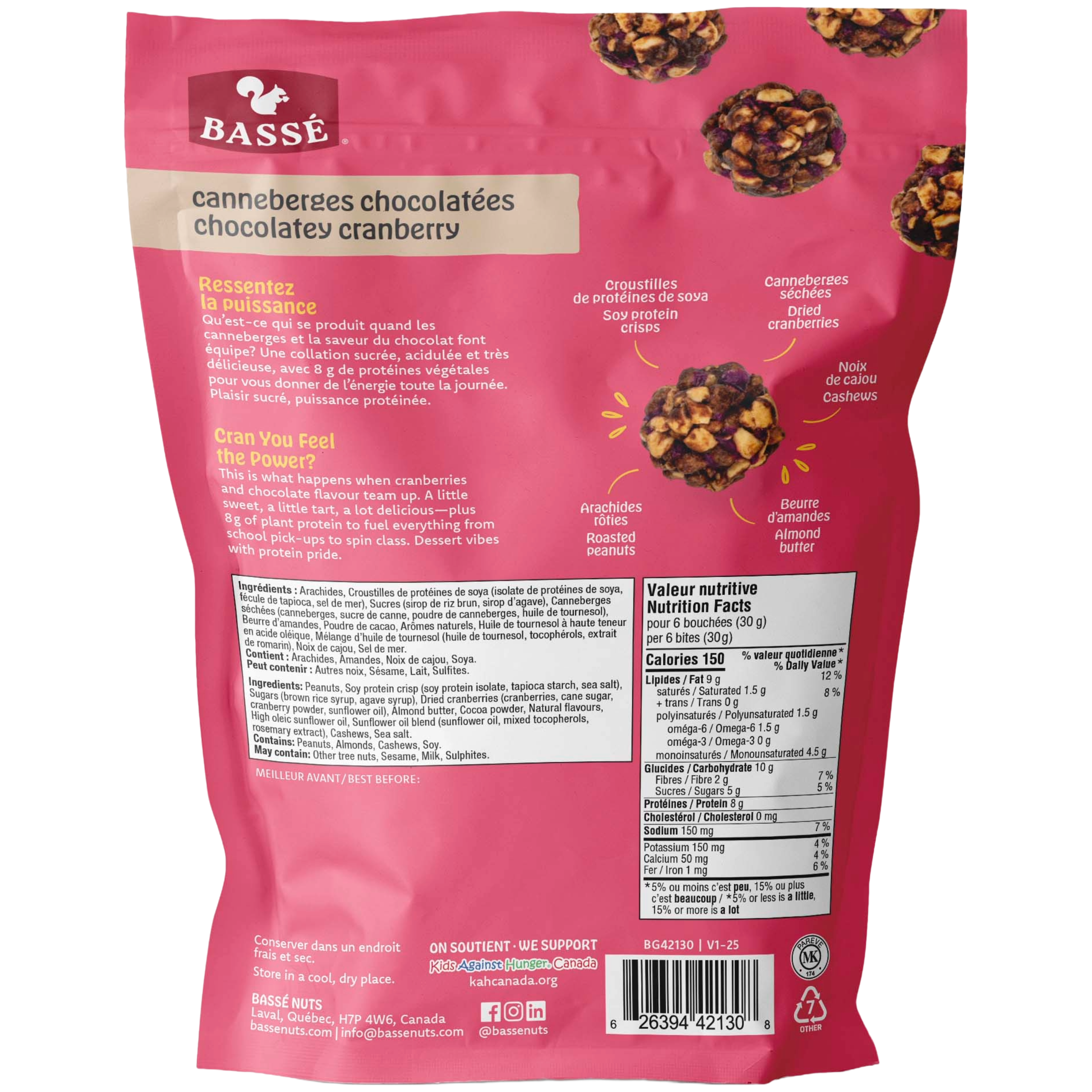 A balanced blend of cranberry and chocolate flavour, delivering a lightly sweet, lightly tart taste profile. Each serving provides 8 g of plant-based protein to support energy and everyday performance—ideal for consumers seeking a better-for-you snack with bold flavour.